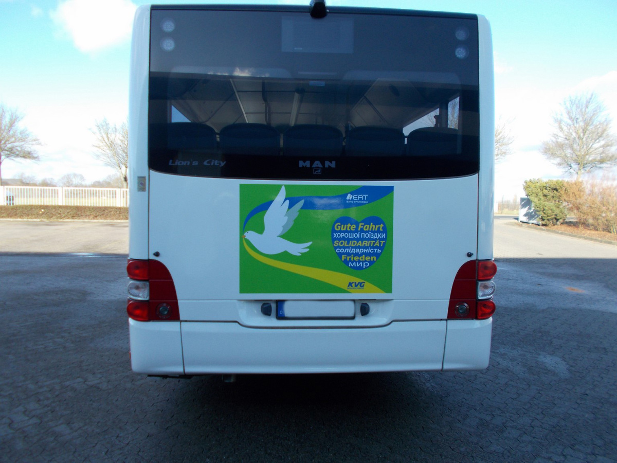 KVG-Geschäftsführer Axel Gierga begleitet die beiden Fahrzeuge gemeinsam mit vier weiteren KVG-Mitarbeitenden auf ihrem Weg von Salzgitter in die Ukraine: „Wir wollen unseren Beitrag für die Menschen in der Ukraine in dieser schweren Zeit leisten und hoffen, dass unsere Fahrzeuge eine lange Zeit im dortigen Nahverkehr genutzt werden können. Die gespendeten MAN Solobusse waren ca. 12 Jahre in unseren Verkehrsgebieten im Einsatz und wurden nun extra in unserer Wolfenbütteler Werkstatt für ihren weiteren Einsatz aufbereitet.
