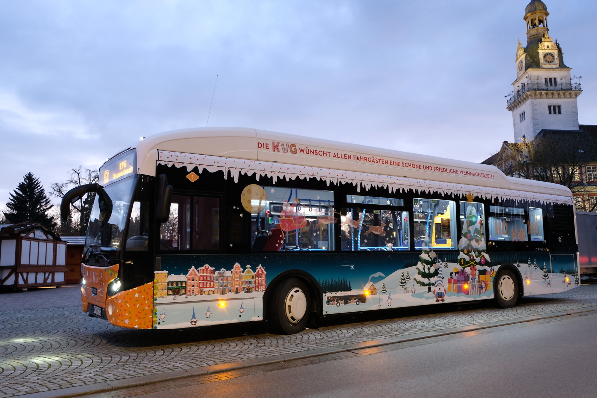 „Wir alle haben ein intensives Jahr mit Krisen und Belastungen hinter uns“, ergänzt KVG- Geschäftsführer Axel Gierga, „deshalb wollen wir in der Vorweihnachtszeit unseren Fahrgästen eine kleine Freude bereiten. Für die Dauer einer Fahrt können sie den Alltag vielleicht ausblenden und die weihnachtliche Vorfreude ganz auf sich wirken lassen“.